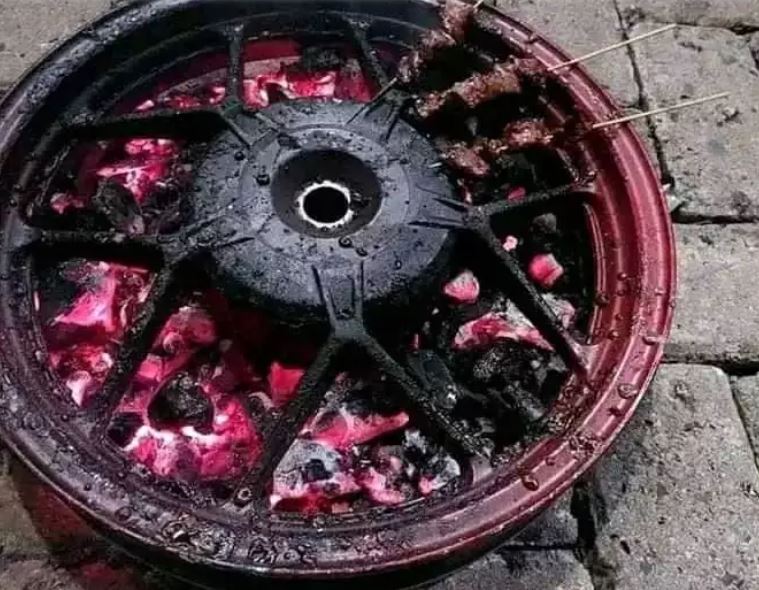 Sayang banget sih velg bagus-bagus malah buat bakar sate.