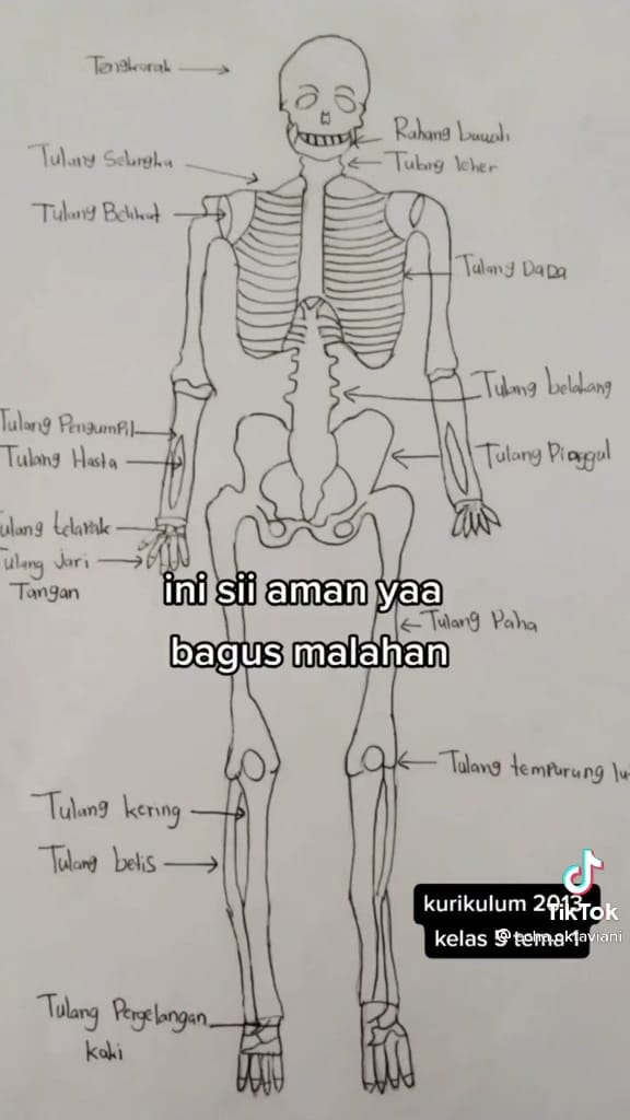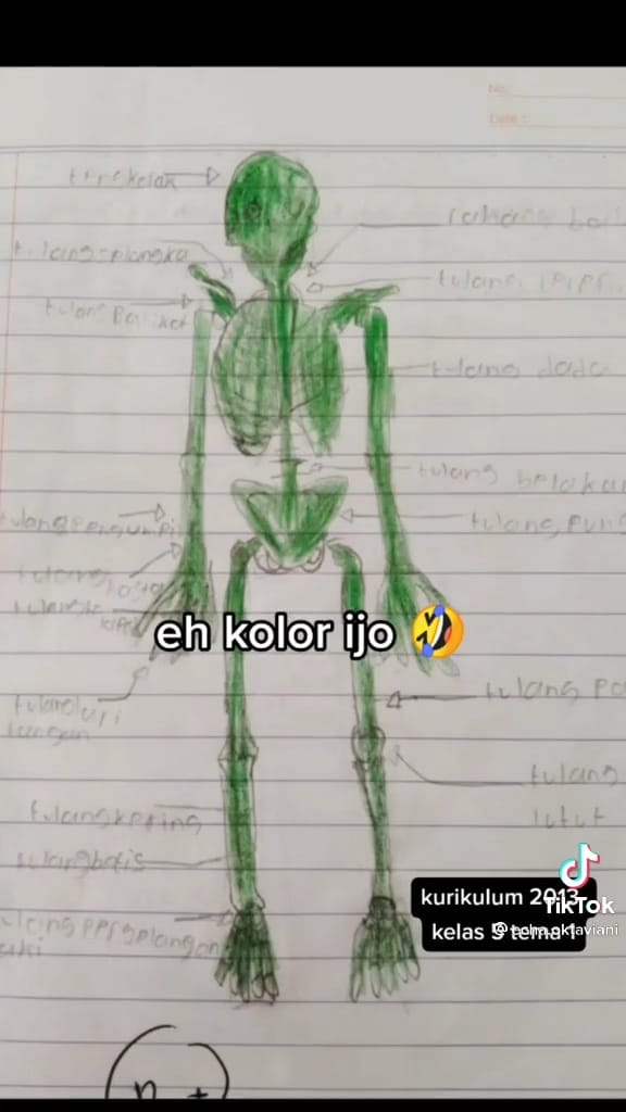 Mungkin itu sebabnya banyak guru IPA sekolah dasar, terutama saat mengajar biologi, menyuruh siswanya menggambar kerangka manusia. Hal tersebut terlihat di akun [email protected]. Sementara siswa yang diminta menggambar masih duduk di bangku kelas lima sekolah dasar.