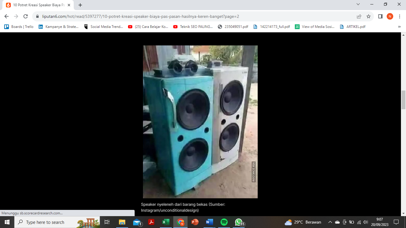 Speaker merupakan perangkat speaker yang saat ini tersedia di pasaran dengan harga yang sangat murah. Ternyata speakernya sendiri mudah dibuat jika Anda paham elektronika. Dengan sedikit belajar, Anda pasti bisa membuat speaker dari berbagai macam barang bekas. Namun terkadang pembuatan speaker dengan barang bekas ini bentuknya aneh dan bikin ngakak, penasaran? Yuk cek dibawah ini.