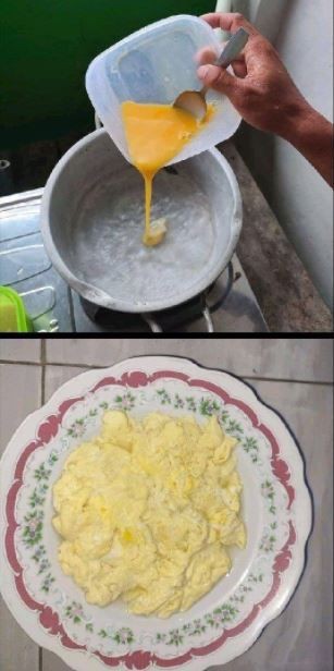 Biar lebih sehat dong, makannya telur dadar rebus.