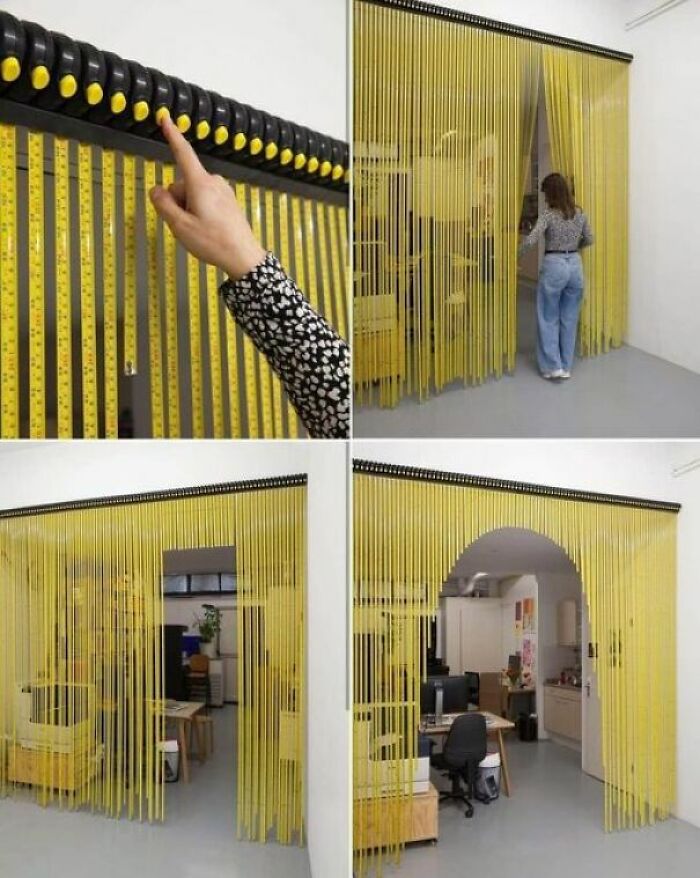 5. Bisa-bisanya kepikiran bikin pembatas ruangan dari meteran seperti ini
