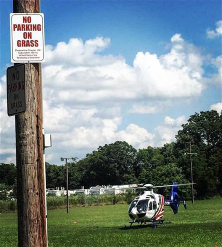 Nggak boleh parkir di rumput bos, mungkin kecuali helikopter.