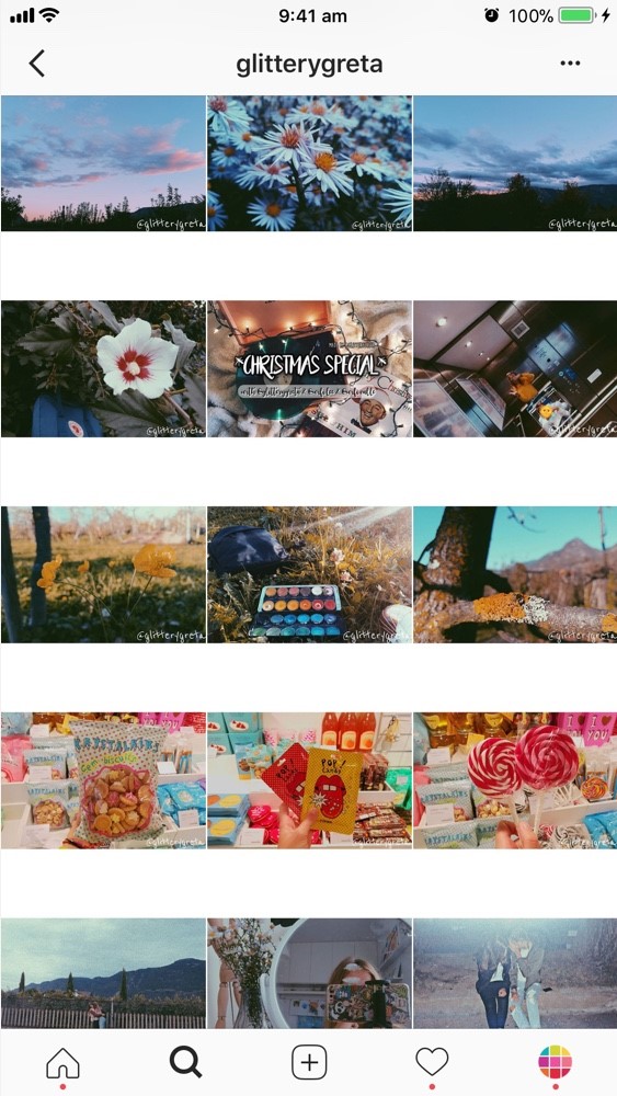 Tema yang satu ini berbeda dari yang lain dengan sentuhan elegan. Tema ini cocok buat kamu yang mau viewers nya fokus pada satu foto, karena foto di tema ini bakal dipisahin sama banyak space putih. Kalo pake tema ini, masing-masing foto di feedslo tuh seakan-akan nyeritain kisahnya masing-masing.