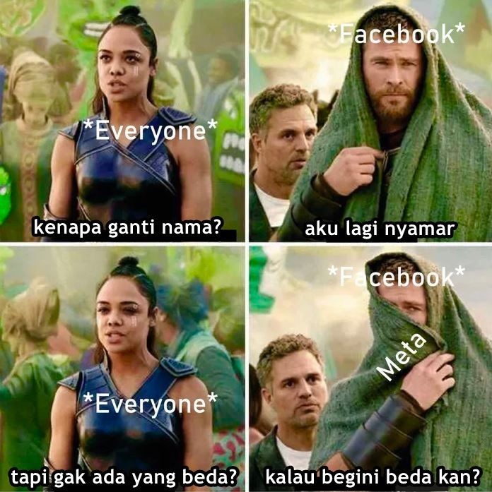 Bahkan banyak juga netizen yang membuat meme kocak seiring pengumuman Facebook yang berganti nama. Beberapa dari meme itu bahkan bisa menyentil Mark Zuckerberg. Penasaran? Simak deretan meme kocaknya, yuk...
