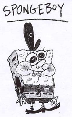 - Sketsa Spongebob dan Squidward yang jaga kasir