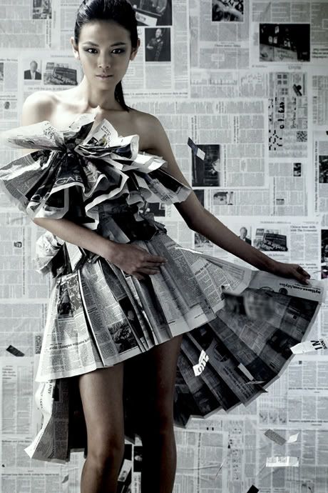 - Tumpukan surat kabar di bawah gaun terlihat sangat estetik