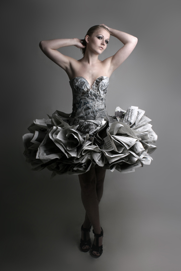 - Berbentuk seperti ball gown, gaun ini dibuat dari ratusan surat kabar
