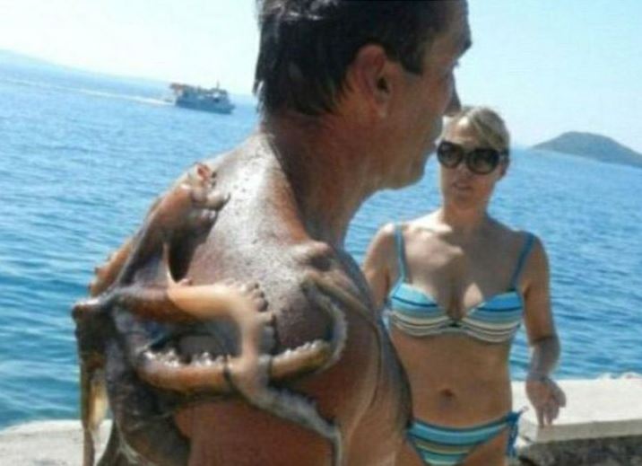 - Si bapak nggak sadar ya kalau itu gurita nemplok di punggungnya?