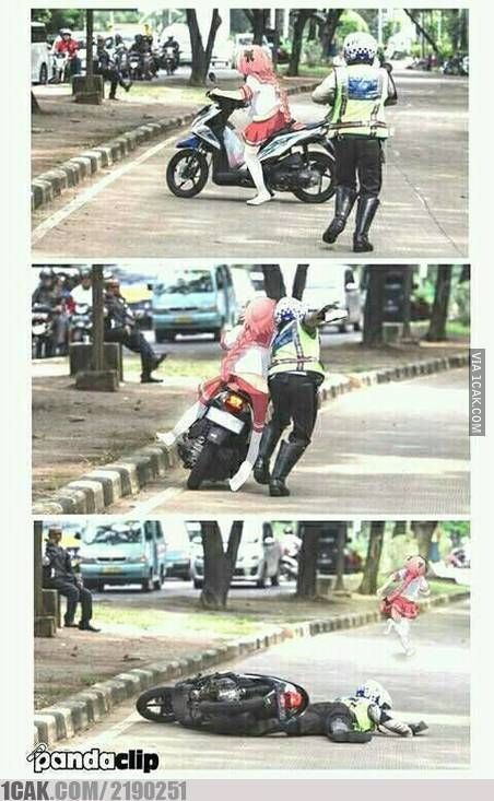 - Yah kenapa jadi pak polisinya yang jatuh hehehehe