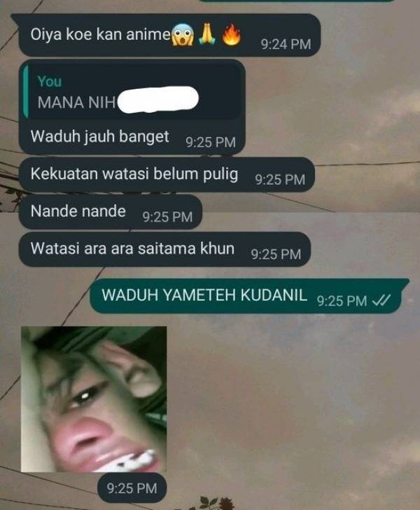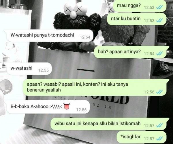 Mungkin kamu sering mendengar kata wibu di media sosial. Wibu atau weaboo sendiri merujuk pada orang non Jepang yang terobsesi dengan budaya pop Jepang secara berlebihan. Wibu biasanya membawa budaya Jepang tersebut ke kehidupan sehari-harinya. Termasuk saat berbalas chat dengan teman. Seperti deretan chat dengan teman wibu dibawah ini yang bakal kamu senyum senyum sendiri melihatnya, penasaran? Yuk cek langsung saja..