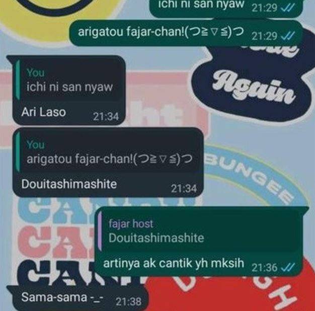 - Kenapa gak sekalian chat pakai huruf Kanji saja, deh