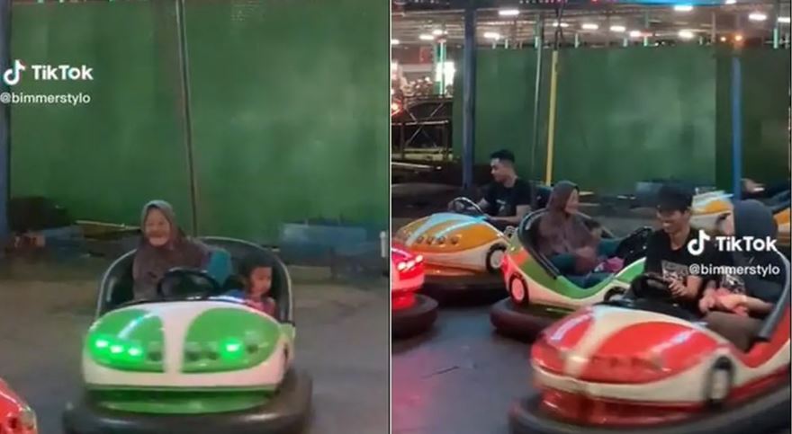 Asyiknya main bumper car ditemenin cucu.