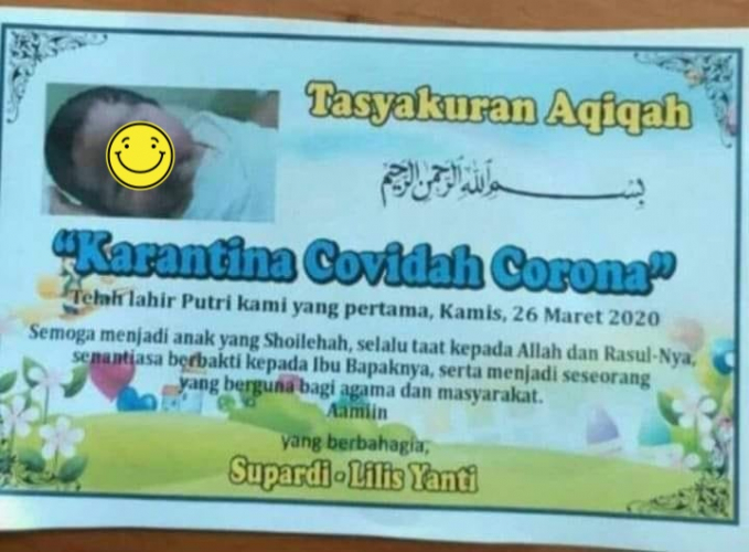 Dalam tasyakuran anak sendiri biasanya akan ada moment undangan yang disebar ke masyarakat terdekat untuk menginformasikah acara tasyakuran tersebut. Tapi lucunya nama anak yang didalam undangan tersebut terkadang membuat kita yang baca menjadi ketawa karena unik beda dari pada yang lain..