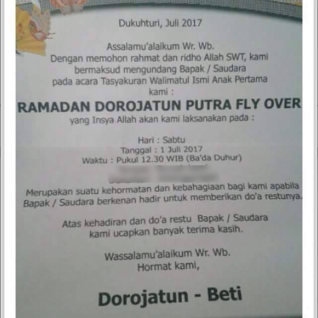 Penasaran seperti apa nama anak dalam undangan tasyakuran yang unik itu?? Yuk kita cek sama-sama