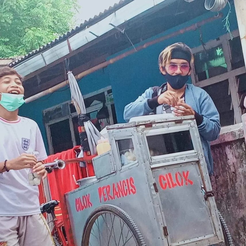 - Ciloknya pakai tulisan hangeul di gerobak jualannya lho, mentang-mentang lagi demam Korea.