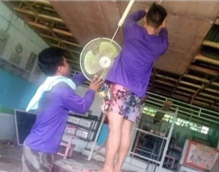 Yang Penting Heppiii. Umumnya sih, kipas angin dipasang di dinding ruangan, ada juga kipas angin gantung yang dipasang di plafon, atau kipas angin berdiri yang cukup diletakkan aja di tempat yang dibutuhkan. Aturan, gampang dong ya. Tapi orang-orang anti mainstream di bawah ini nggak mau sama kaya orang-orang lain, mereka lebih memilih naruh kipas angin dengan cara yang bisa dibilang out of the box. Nggak tahu deh musti kagum atau tepuk jidat. Lihat sendiri deh.