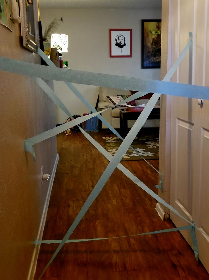 Pas anak ngotot pengen main di luar, padahal lagi panas banget. Kasih aja selotip di tembok dan bilang itu sarang laba-laba raksasa.