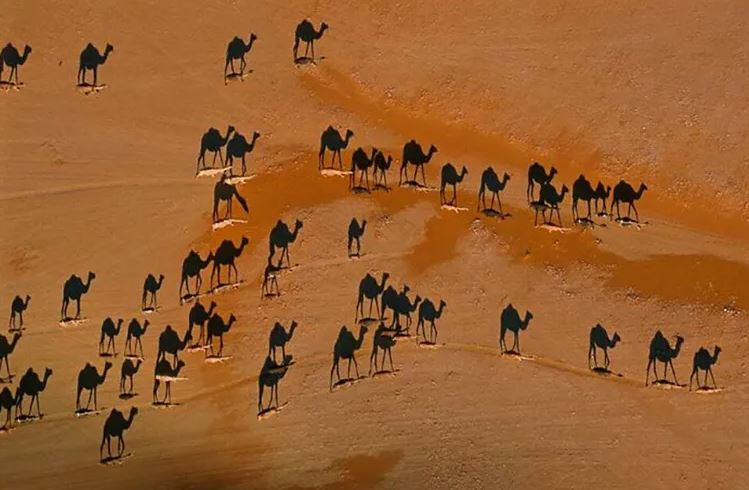 Lihat lagi deh, yang hitam tuh cuma bayangannya, unta aslinya yang kaya garis kuning kecil.