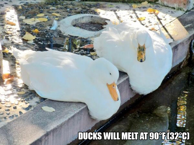 Yang Penting Heppiii. Yap, kamu nggak salah baca, hewan-hewan di bawah ini yang adalah benda padat ternyata bisa meleleh. Dan seperti halnya es, hewan-hewan ini meleleh saat cuaca lagi panas banget. Bebek rata-rata, misalnya, biasanya mulai mencair pada suhu 32 derajat Celcius. Karena pemanasan global, hewan di seluruh dunia mencair dengan kecepatan yang mengkhawatirkan. Makanya yuk kita jaga bumi kita ini bareng-bareng, keburu hewan-hewan mencair semua! Coba lihat di bawah ini, hewan-hewan beneran mencair!