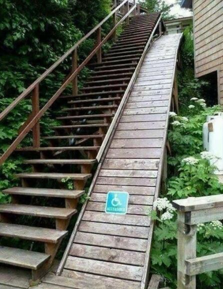 Tapi tampaknya beberapa arsitek nggak terlalu peduli dan malah bikin akses yang bikin orang geleng-geleng lihatnya. Coba aja lihat kasus terburuk arsitek bikin jalur kursi roda di bawah ini!