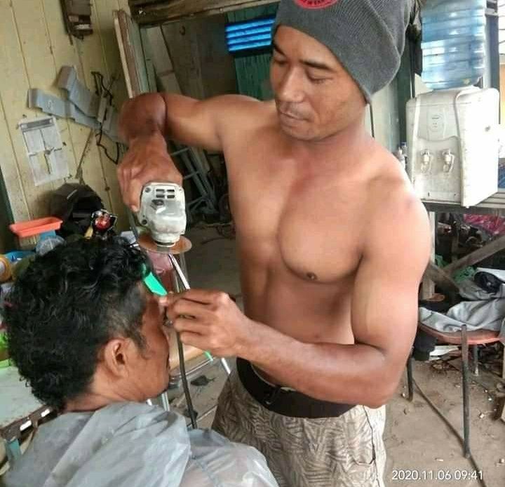 Dia yang potong rambut, kok kita yang deg-degan ya. Potong rambut aja nyawa taruhannya.