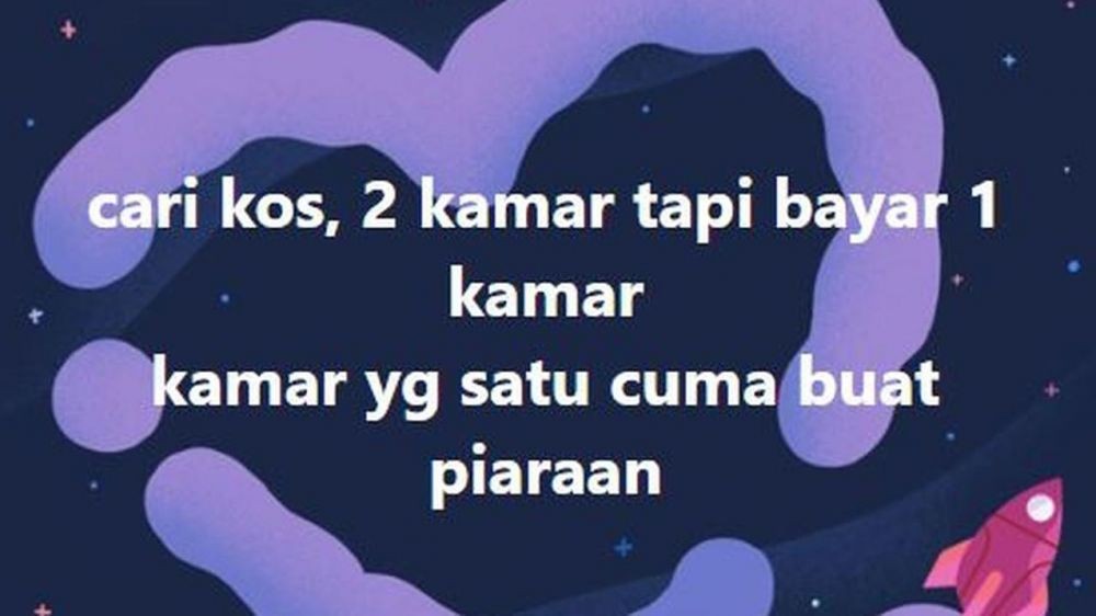 Yang Penting Heppiii. Sosial media nggak cuma dipakai sebagai wadah mengekspresikan diri. Jualan juga pake sosial media. Sekarang, sosial media juga menjadi wadah orang-orang untuk mencari sesuatu yang mereka butuhkan, seperti nyari kosan. Kalo nyarinya pake kalimat biasa sih, wajar ya, yang nyebelin tuh kalo tulisannya mulai ngaco. Kosan nggak dapet, malah bikin perkara baru. Status cari kosan di bawah ini buktinya, ngawurnya kebangetan.
