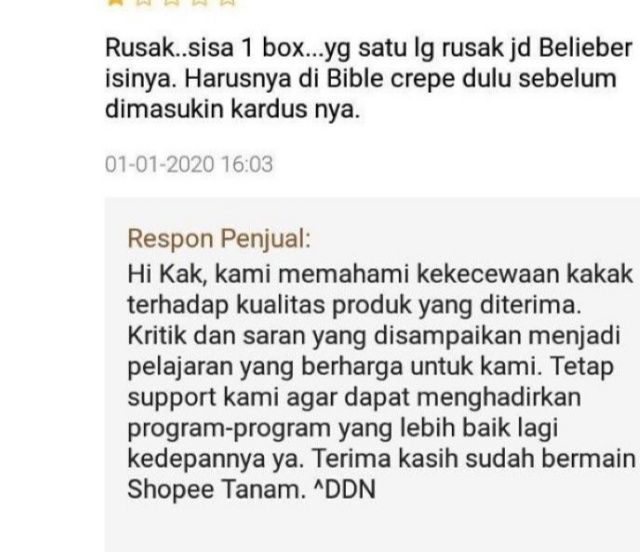 Yang Penting Heppiii. Kamu yang suka belanja online, pasti udah tahu “aturan main” nggak tertulis yang mungkin udah disepakati bersama ya. Apalagi kalau bukan ngasih ulasan atau review tentang produk yang kamu beli. Ulasan bisa bermacam-macam, mulai yang beneran serius sampai yang bawaannya bercanda. Ada juga yang pengennya terlihat keren dengan menggunakan bahasa Inggris, eh malah salah sebut. Kaya ulasan ngaco berikut ini. Gagal keren deh.