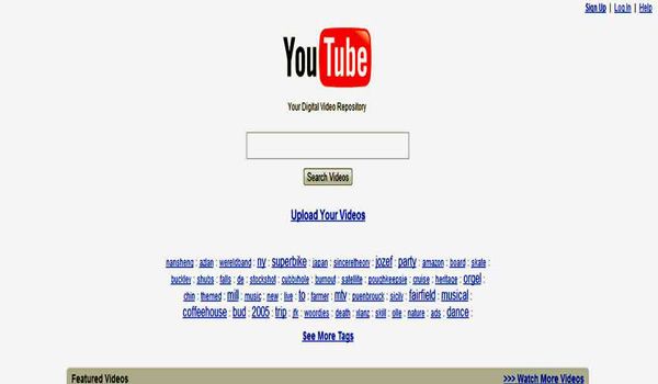 Youtube, diluncurkan pada tahun 2005. Inilah tampilan awal website berbasis video nomor satu di dunia ini pada awal kemunculannya.