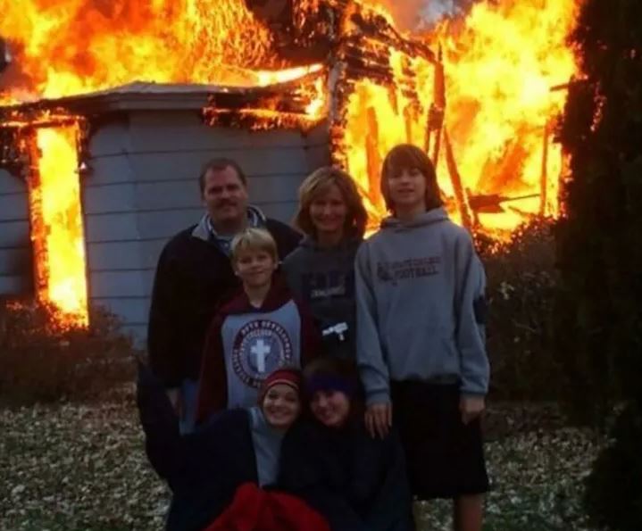 Rumah kebakaran, nggak masalah. Foto keluarga tetap prioritas.