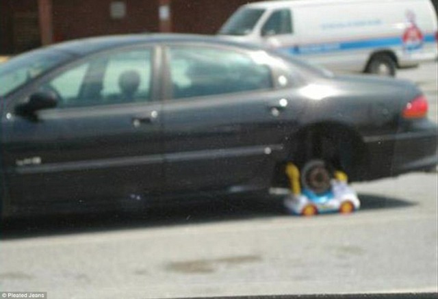 3. Mau nambal ban mobil, ga masalah, mobil mainan ini bisa jadi dongkrak buat nahan.