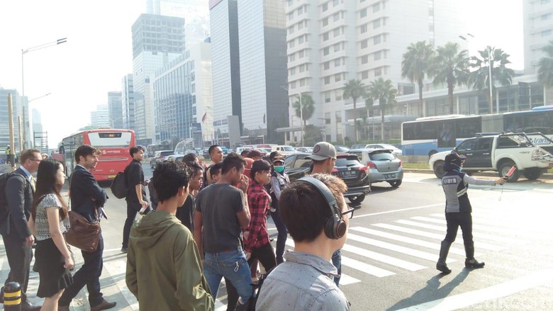 Pelican Crossing di Kawasan Thamrin, Jakarta, udah mulai di coba nih. Pak Gubernur Anies Baswedan hari senin (30/7/2018) turun lapangan untuk mencoba dan melihat langsung cara kerja Pelican Crossing ini. Warga juga ikutan buat nyobain dengan dibantu oleh petugas Dishub.