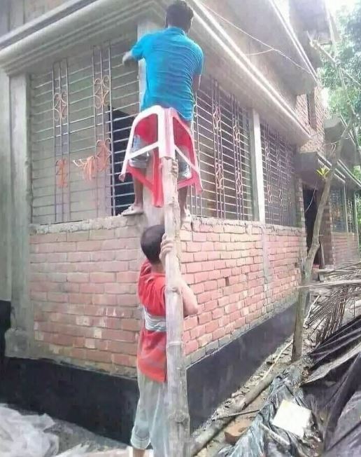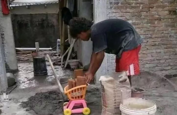 Yang Penting Heppiii. Profesi tukang bangunan nggak bisa dianggap sepele. Butuh skill khusus dan tenaga ekstra untuk bisa membuat sebuah bangunan yang bagus. Selain itu, estetika bangunan juga bisa berkurang kalau kuli bikin kesalahan. Pemahaman akan alat pertukangan juga mutlak bagi tukang bangunan. Kalau nggak menguasai alat, jadinya kaya yang berikut ini.