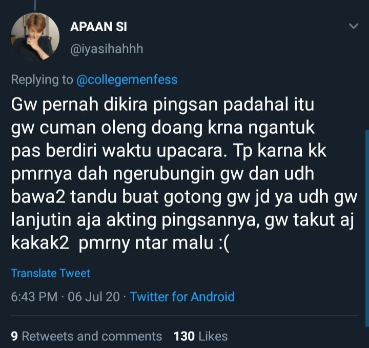 - Karena terlanjur malu yaudah aja terusin pura-pura pingsan