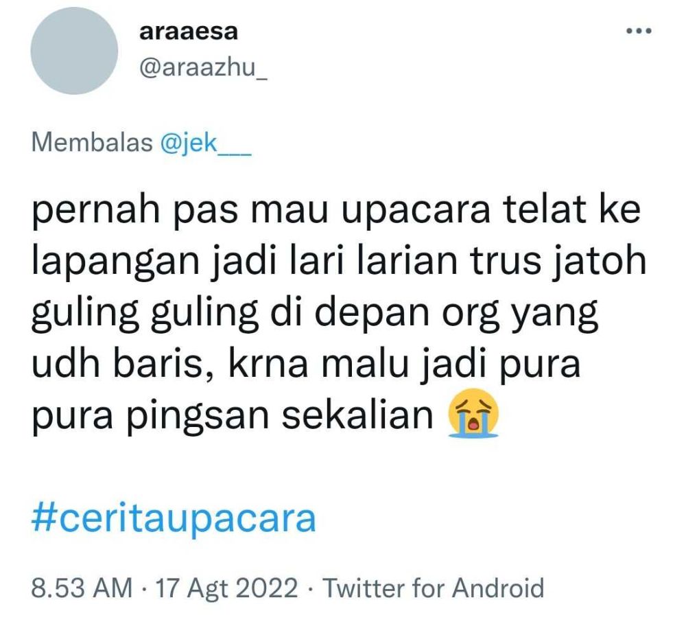Upacara bendera adalah kegiatan ini sebetulnya tidak asing bagi masyarakat Indonesia. Para siswa dari SD sampai SMA selalu melangsungkan upacara bendera setiap senin pagi. Ini menjadi agenda rutin setiap menyambut awal minggu. Umumnya upacara dilaksanakan dengan serius dan khidmat oleh peserta upacara. Kendati demikian, selalu ada saja momen lucu tak terduga yang muncul saat upacara. Seperti yang momen lucu yang yang di alami para warganet berikut ini, nih yuk simak!