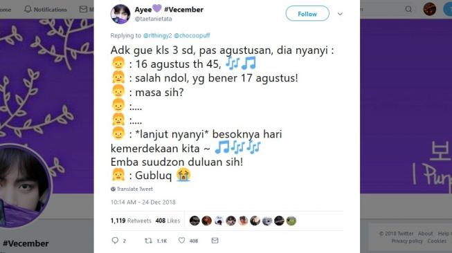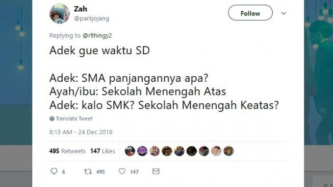 Twitter memang kerap dipakai warganet Indonesia untuk berkreativitas. Salah satunya adalah cuitan receh berisi tingkah dan pertanyaan nyeleneh dari seorang adik yang dibagikan warganet. Berawal dari akun Twitter base @rlthingy2 yang mengunggah tweet berisi pertanyaan kocak, warganet beramai-ramai membuat cuitan serupa di kolom komentar, Yuk simak deretannya twitnya berikut ini!