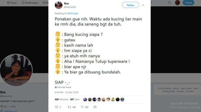 - Berarti siap-siap kalau kucingnya hilang, bisa dicoret dari kartu keluarga sama bunda