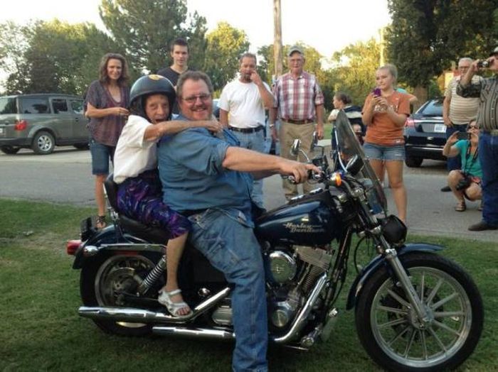 Ulang tahun ke 100 baru ngerasain dibonceng motor.