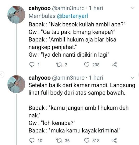 Dikatain temen=no, dikatain bokap sendiri=yes.