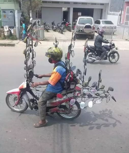Yang Penting Heppiii. Faktanya, Indonesia merupakan salah satu negara dengan pengguna kendaraan roda dua terbanyak di dunia. Nah, karena kita sering liat pengendara di mana-mana, nggak jarang kita juga liat kelakuan nyeleneh yang bikin kita gemes sendiri. Kebanyakan sih nggak sering, tapi kadang ada aja yang bikin kita merinding. Contohnya, nih, ada beberapa gambar yang kocak dari pengendara yang bikin kita heran. Ini kayaknya mereka lebih ke nyusahin diri sendiri, deh. Yuk simak.