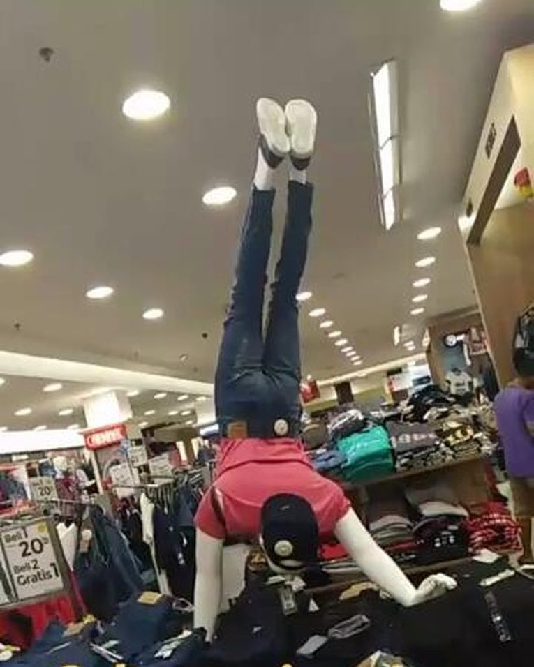 Yang Penting Heppiii. Kalau lagi jalan-jalan di toko pakaian, pasti ngga asing ya sama manekin yang dipajang. Patung manekin ini dipakai untuk menunjukkan pakaian dalam berbagai bentuk. Tapi bagaimana kalau pemilik tokonya memanfaatkan manekin semaksimal mungkin? Kira-kira calon pembeli bakal tertarik ngga ya?