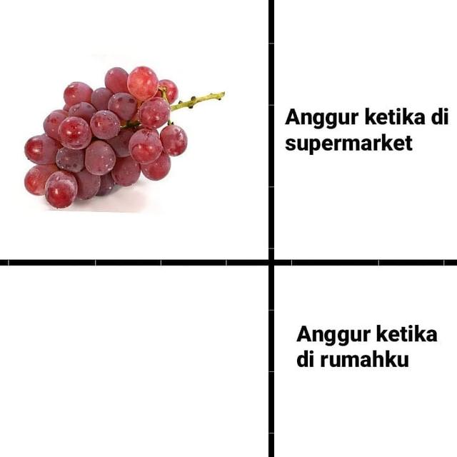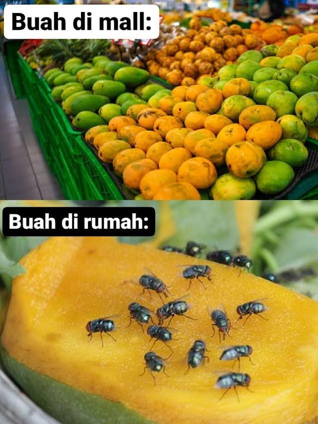 Yang Penting Heppiii. Kalau kamu belanja di supermarket, kamu pasti melihat sederetan buah-buahan segar dan menggiurkan dengan kemasan menarik yang membuatmu tergoda ingin membelinya. Sesampainya di rumah, anggota keluarga di rumah pasti ingin segera menghabiskannya. Situasi tersebut tertuang dalam meme kocak berikut.