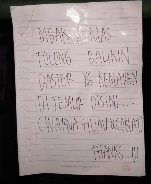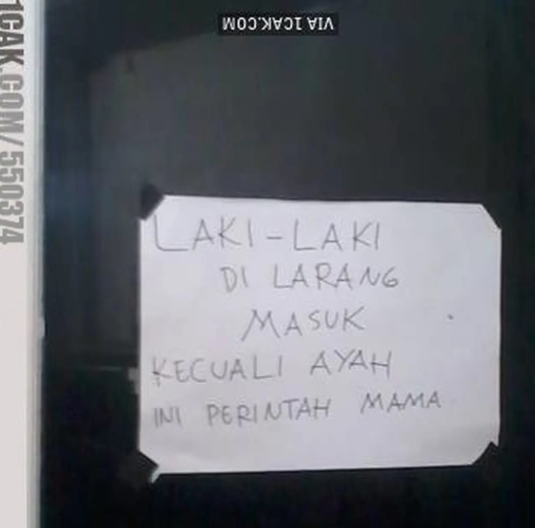 Bagi anak kos tentunya sudah sangat familiar dengan peringatan-peringatan yang ditempel di dinding kos. Mulai dari peringatan untuk membersihkan kamar mandi, peringatan membuang sampah sampai peringatan laki-laki dilarang masuk. Tak hanya peringatan tegas dan serius, tak jarang pula ibu kos menuliskan sebuah peringatan dengan kata-kata yang kocak. Seperti peringatan laki-laki yang dilarang masuk ini, bakal bikin kamu ngakak melihatnya, Penasaran? Yuk simak langsung saja..