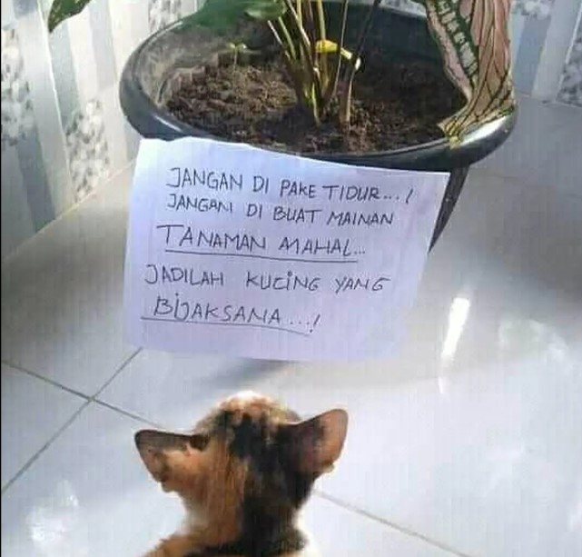 Katanya, kucing merupakan salah satu hewan yang paling disukai banyak orang. Selain menggemaskan, kucing juga dinilai sebagai peliharaan yang penurut oleh pemiliknya. Nggak heran, kucing jadi hewan yang begitu disayangi oleh pemiliknyaya. Bahkan banyak kucing yang diperlakukan layaknya manusia, seperti beberapa kucing dalam potret berikut ini, yang dimana diberikan peringatan dalam bentuk tulisan,padahal kucing kan ga bisa baca, ada-ada tingkah babunya. Yuk simak beberapa potretnya berikut ini!
