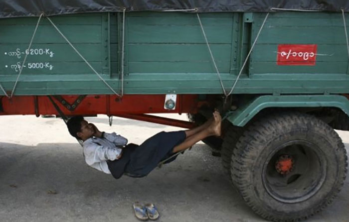 - Tidur di kolong truk