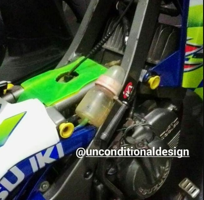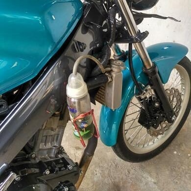 - Haha, isi air radiatornya pakai botol susu punya anaknya