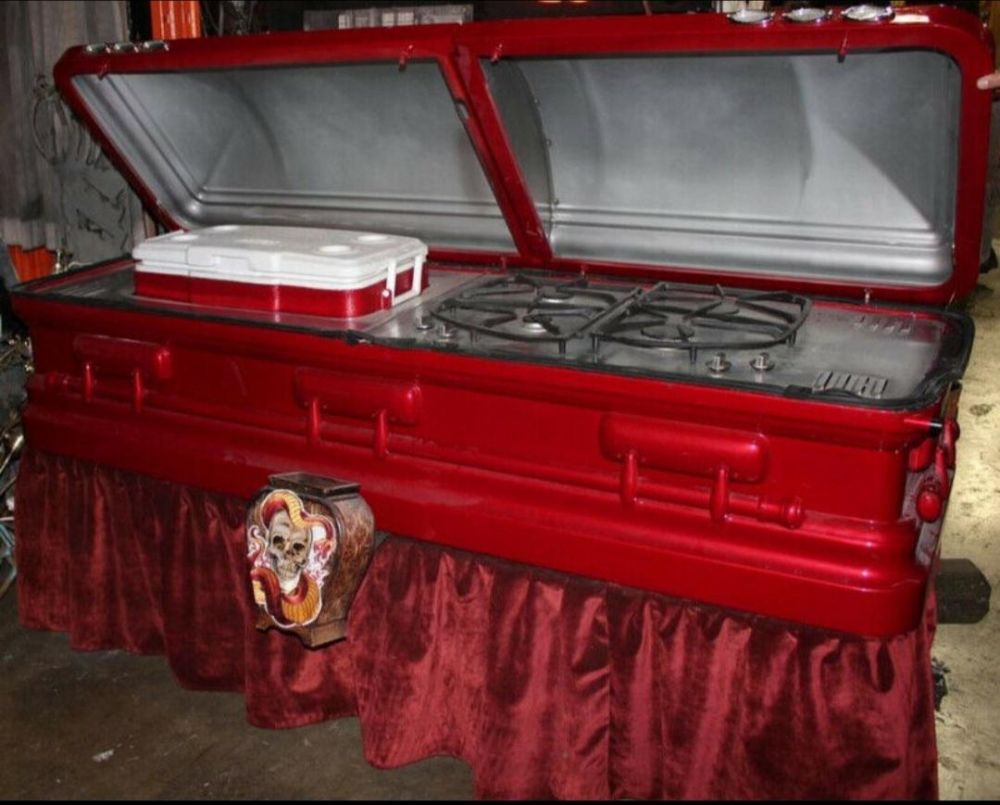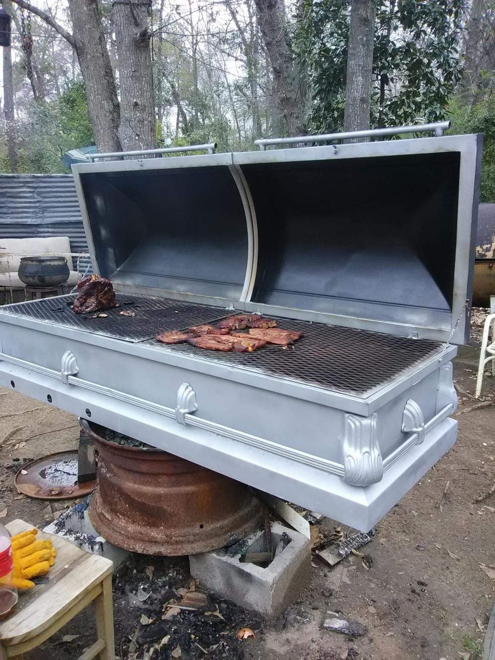 6. Ada lagi nih, peti jenazah yang dijadikan alat BBQ ditambah sebuah kotak es