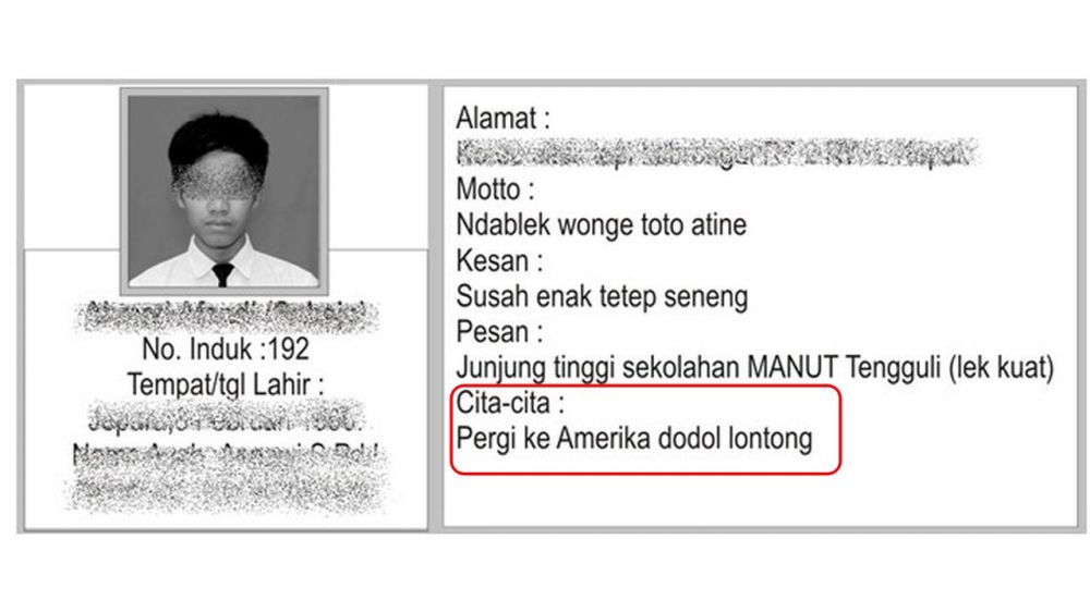 Namun begitu, ada juga yang turut menyertakan cita-cita. Tapi terkadang banyak para siswa yang mengisi cita-cita mereka dengan kocak bahkan nyeleneh.