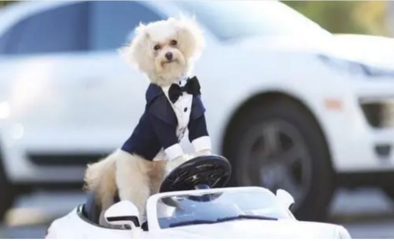 - Si anjing yang bergaya necis siap menjemput si calon istri.