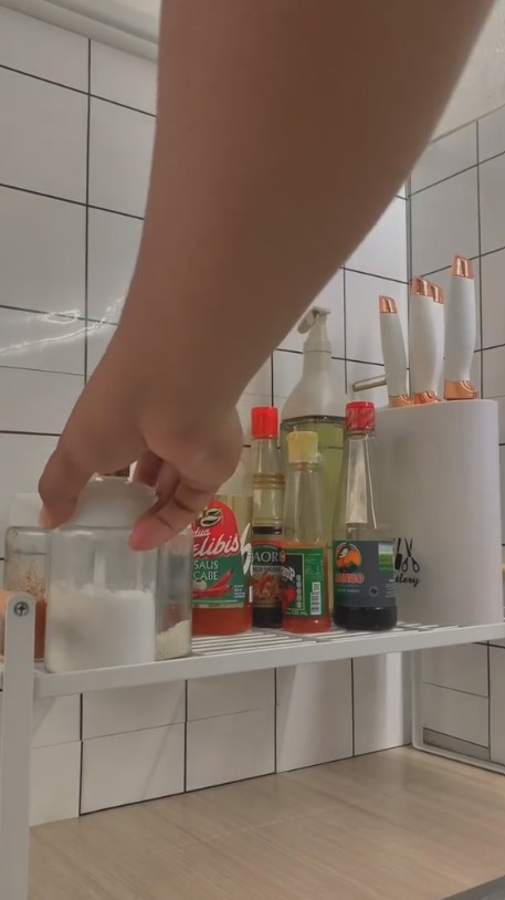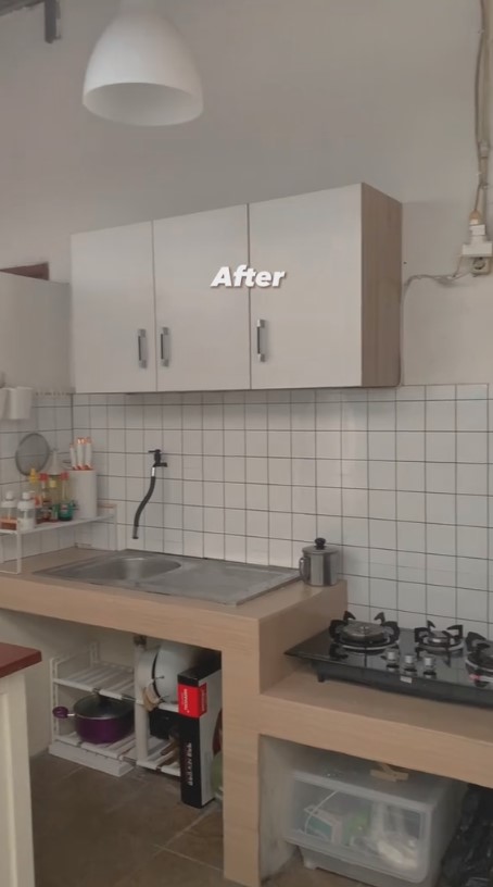 - Ia juga menambahkan kabinet atas sebagai tempat penyimpanan berbagai kebutuhan dapur.
