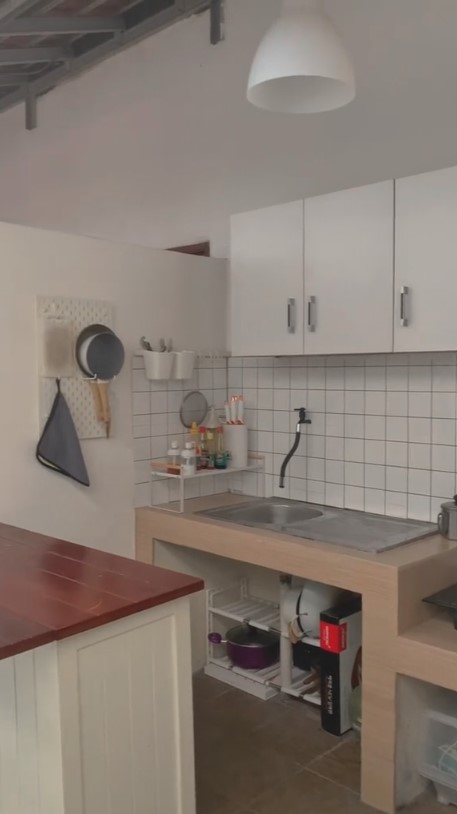 - Pemilik rumah merombak dapurnya dengan mengecat ulang tembok dan memasang beberapa perabotan baru.